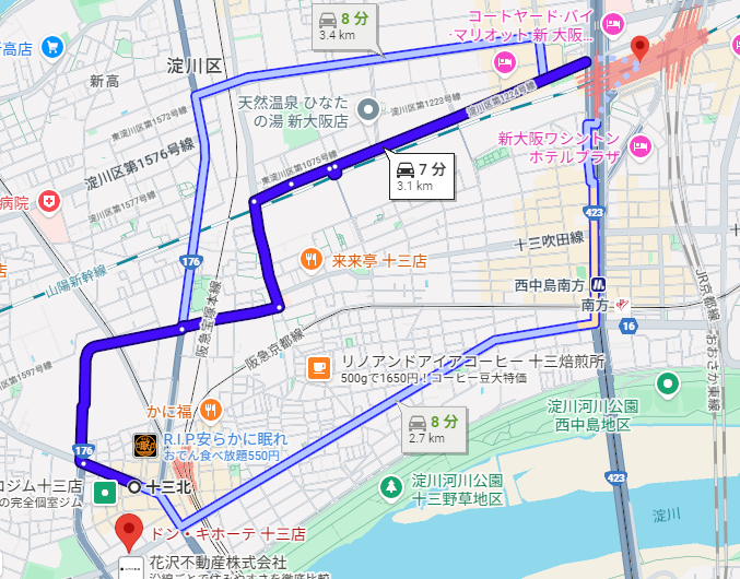 十三駅周辺から新大阪駅へ向かう際、地図上の直線距離が近い淀川通をつい選んでしまっていませんか?
